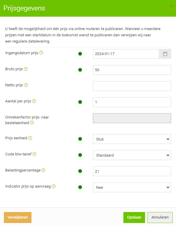 - Sleutelvelden zoals product- en of artikelnummers en GLN’s kunnen niet worden gewijzigd.