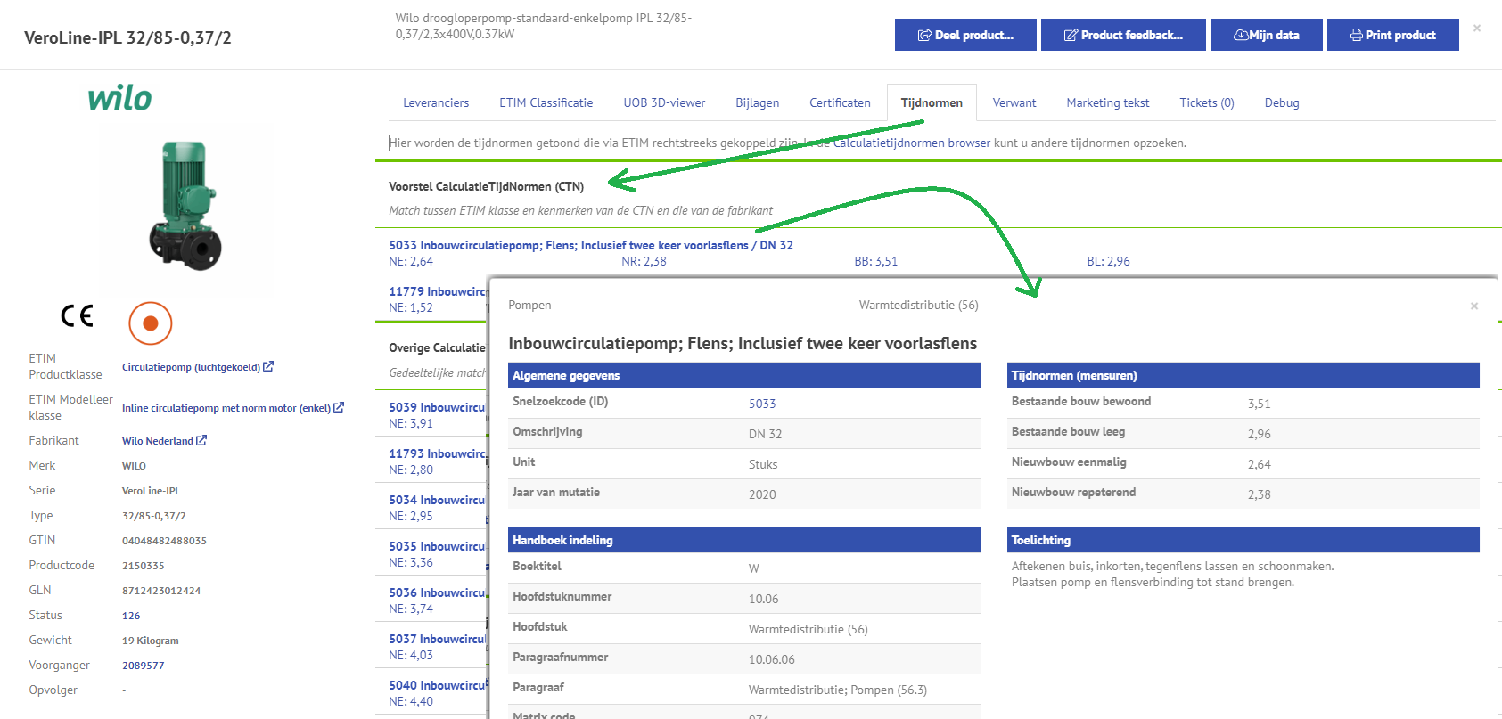 • U vindt hier de tijdnorm voor Bestaande bouw bewoond / leeg en Nieuwbouw eenmalig / repeterend. U kunt de tijdnorm visueel aflezen of inlezen in uw uw ERP/CAD pakket.